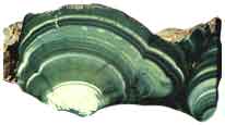 Окраска малахита представляет собой палитру зеленых тонов от светло-зеленого с голубизной (бирюзового) до густого темно-зеленого ("плисового") цвета.