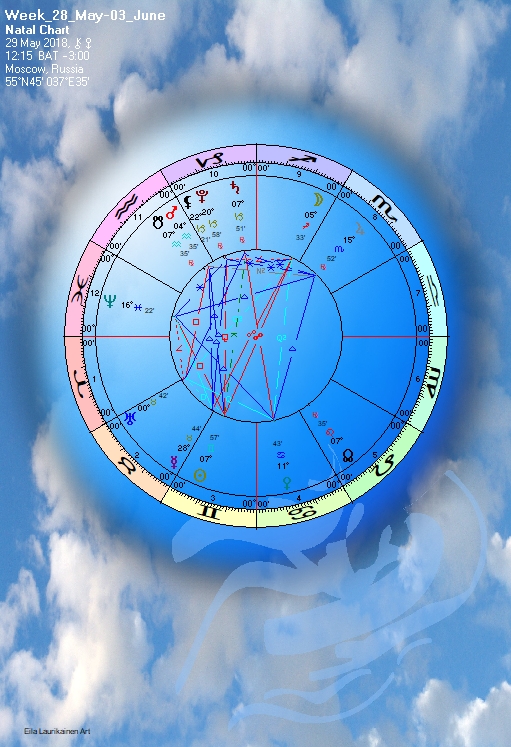 Воздушная стихия на этой неделе получает заметный импульс в деловой и интеллектуальной работе. Со среды по пятницу будет наблюдаться быстрый и очень эффективный аспект Меркурия и Марса в Водолее. Удачный момент для поездок, общения с друзьями, творческого интеллектуального общения, полета мысли. Поскольку Марс в Водолее – один из главных факторов в прогнозе этого лета, ожидаем ключевые знакомства, новые деловые идеи, важные переговоры и поездки. И, конечно, это очень похоже на то, что сборные разных стран начинают слетаться в Россию для Чемпионата Мира по футболу. Близнецы – это птица, полет и дорога, Марс – это спорт и мужчины, а стоит он в знаке России Водолее. Логика космоса, как всегда, невероятно точна.
