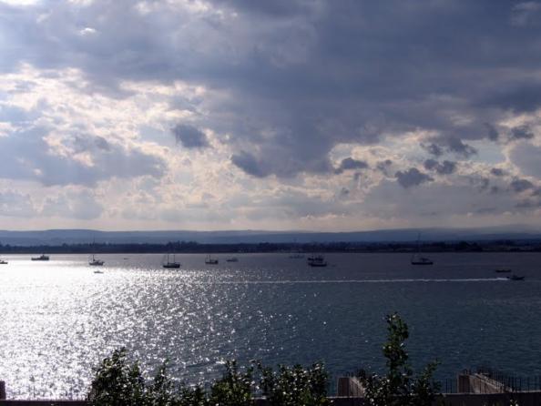 Еще одна достопримечательность Сицилии – это облака! Они там настолько невероятные и живут такой насыщенной жизнью, что если бы мне кто-то в кино показал то, что каждый вечер происходило у нас на небе – я бы решила, что это все компьютерная графика и голимый фотошеп. Одновременно могло - на одной стороне светить солнце, на другой стороне сверкать молниями и наливаться темным фиолетом грозовая туча. А на ее почти черном фоне, проплывать беленькие полупрозрачные облачка самых причудливых форм, будто они и не знают о туче … так... по своим надобностям куда-то… Было как-то даже одно облачко в форме поцелуя))) Супер! А над морем облака напоминают поднос с вазочками мороженого – плоская ровная платформа серого цвета и от нее вверх столбики кучевых белых облаков.