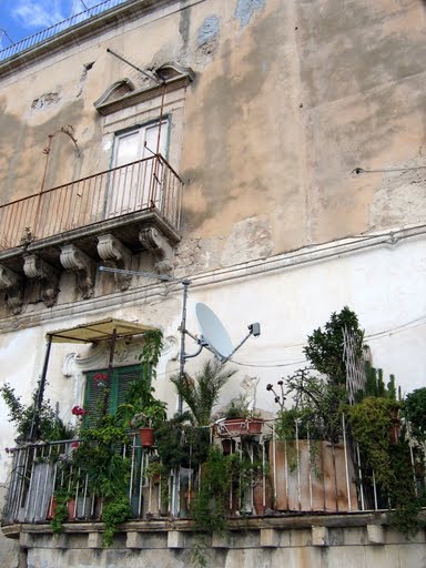 Город - старый… а он и не стремится прихорашиваться. Он такой, каким сделали его века, на многих домах уже очень трудно понять, что был за цвет стен, и кто изображен на барельефе, но он живой! ))) На балконах, вместе со статуями мадонн, растут кактусы и торчат тарелки спутниковых антенн, через улицы протянуты веревки и ветер радостно треплет на них детские ползунки, мужские майки и пикантные бикини… На скамейках у фонтанчиков сидят сицилийские бабуси в черных платьях и черных грубых башмаках с неизменными, со времен Марио Пьюзо, редикюлями…