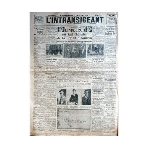 На снимке более поздний номер упоминаемой в статье газеты, который сообщает об успешном перелете и награждении летчика орденом Почетного легиона.