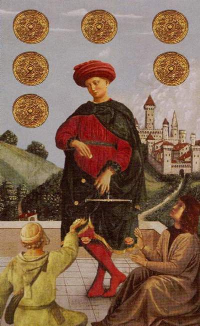 Шестерка Пентаклей предвещает удачу тем, кто находится «в поисках себя» и своего призвания, обещает помощь в трудоустройстве, можно предположить динамику в карьерном росте.