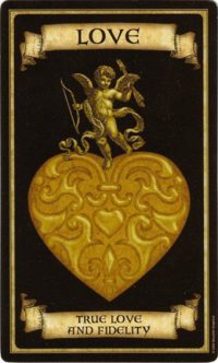 Золотое сердце — символ подлинной любви. Карта олицетворяет верность, преданность, любовный союз. Одна из версий происхождения символа в форме сердца — силуэт пары подплывающих навстречу друг другу лебедей в момент касания. Лебеди — символ любви, верности и преданности, сформированная пара остается вместе на всю жизнь, такое явление в мире животных наблюдается крайне редко.