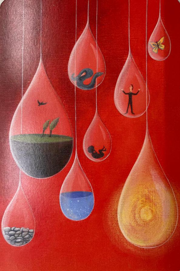 Капля со змеей тоже имеет целый спектр значений: мудрость и ее применение. Яд змеи может отравить, но и вылечить. Момент искушения из христиансткой традиции тоже можно рассматривать как один из мотивов этой капли: Искушение как стимул к перерождению и очищение через этот процесс... или гибель и возрождение...