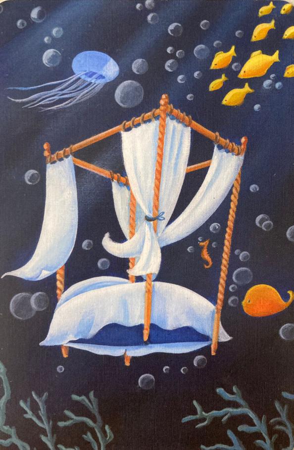 Какую роль играют на карте рыбы? Есть ли они символы пестрых чувств или же они могут символизировать и людей, наблюдающих за кроватью и всем, что с ней связано, может они и сами хотят прилечь в свежую постель и отдохнуть?