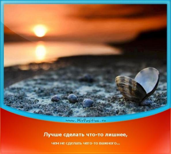 Не забывайте, что именно ваш внутренний мир, ваше спокойствие или, наоборот, дисгармония, влияют на внешний мир, на все ваши поступки и решения. И чем более вы умиротворены, счастливы и уверены в себе, тем более благожелательной становится для вас окружающая реальность. Самое важное — внутри вас, а внешний мир лишь откликается и подыгрывает вашему внутреннему состоянию.