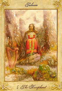 Иерофант – карта наставничества, передачи истин, которые не нуждаются в интерпретации, но требуют исполнения. Это ортодоксальный, традиционный подход к рассмотрению ситуации, на которую накладываются рамки божьих и человеческих законов. Карта указывает на инертность, удержание, практичность, соблюдение традиций и запретов, повиновение закону. Карта означает поиск истины в традиционных источниках. Это может быть обращение за истиной к духовному наставнику, священнослужителю к представителю закона, опытному консультанту, психоаналитику. Карта может означать церемонию посвящения, перехода в новый статус, обряд бракосочетания, венчание, крещение, посещение мест поклонения и всевозможные ритуалы, относящиеся к общим и местным традициям. Это может быть ваша социальная роль, маска, которую приходится надевать, чтобы находиться «в структуре» и получать от этого определенные преимущества.